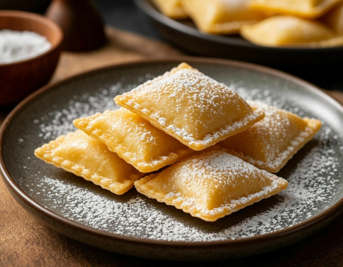 Равиоли дольчи – это блюдо момента. Конфетти, музыканты, люди в костюмах – с января по февраль, когда карнавал набирает обороты, их продают на каждом углу. Суета, шум, ожидание чего-то волшебного. Запах, который цепляет за рукав и не отпускает. Дети выпрашивают монетки у родителей, да и взрослые не могут пройти мимо. Особенно во второй половине дня, ближе к меренде – полднику, когда весь город высыпает на улицы после полуденного дрёма. Горячие, хрустящие снаружи, с тающей начинкой внутри – они исчезают мгновенно. Обжигают пальцы и губы, осыпают сахарной пудрой одежду, но оторваться невозможно.