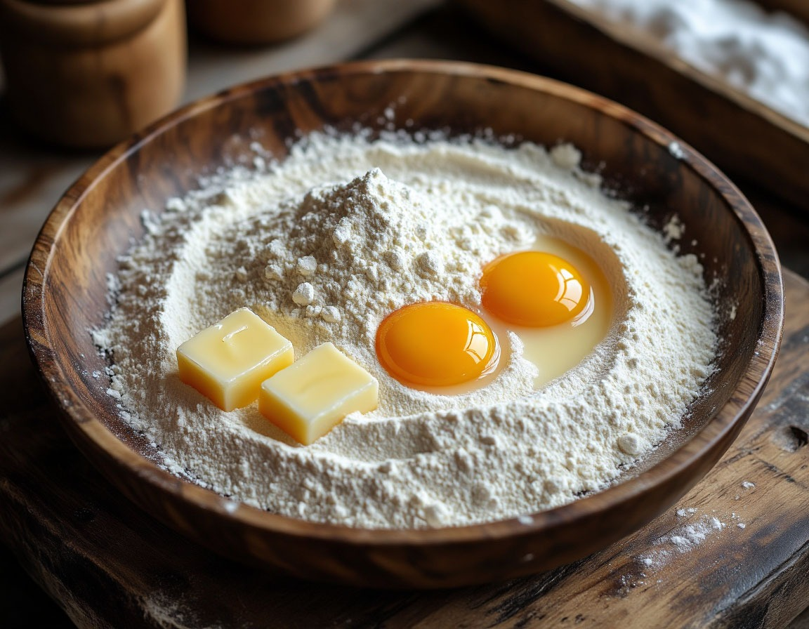 Основа – песочное тесто на сливочном масле. Четыреста граммов белой муки, двести пятьдесят граммов масла, два желтка и щепотка соли. Всё растирается практически в крошку, потом собирается в упругий ком. Это тесто требует времени и покоя – его раскатывают тонко-тонко, до прозрачности, складывают, снова раскатывают. Четыре-пять раз. Каждый раз тесто становится более податливым, живым.