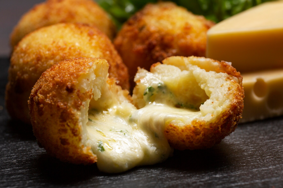 Идеальный аранчино требует точного расчёта пропорций: рис должен быть достаточно клейким, чтобы держать форму, но не настолько, чтобы превратиться в кашу. Панировка обязана быть равномерной, а масло — иметь точную температуру для создания золотистой корочки без пригорания.